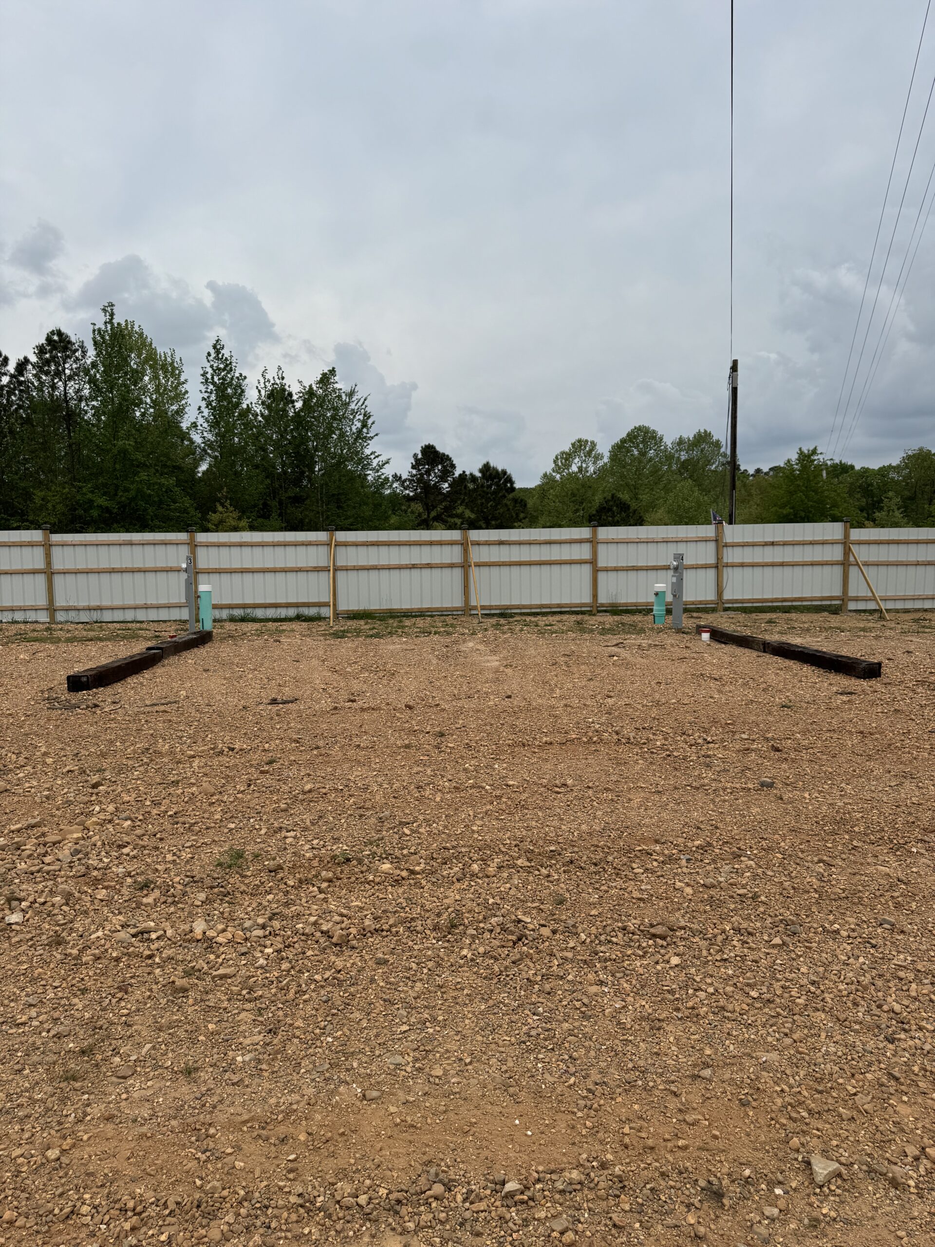 Spacious 55ft by 28ft back-in RV spot, Full hookups, ideal for accommodating an RV, vehicle, and boat.